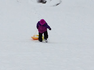 It was the first day of my recess and the kids spring break. We had plans to go to work and get stuff done but woke up to snow! So I called into work and we went sledding instead. The kids were the only ones out on this hill and saw a fox as well. We all piled on the sled together a couple of times. Going back up and down the hill was quite the workout! Eventually Trevor just gave up and tried to roll down the hill.